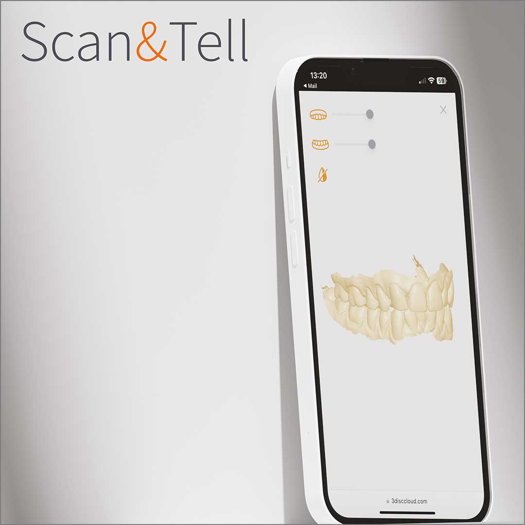 Eine revolutionäre 3D- & 2D-Interaktionserfahrung. Scan&Tell ermöglicht es dem Zahnarzt, den Zustand der Mundgesundheit zu präsentieren und den Patienten einzubinden, um die Kommunikation bei der Behandlungsplanung zu unterstützen.
